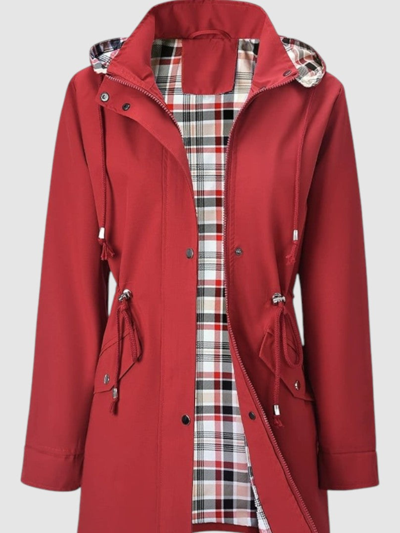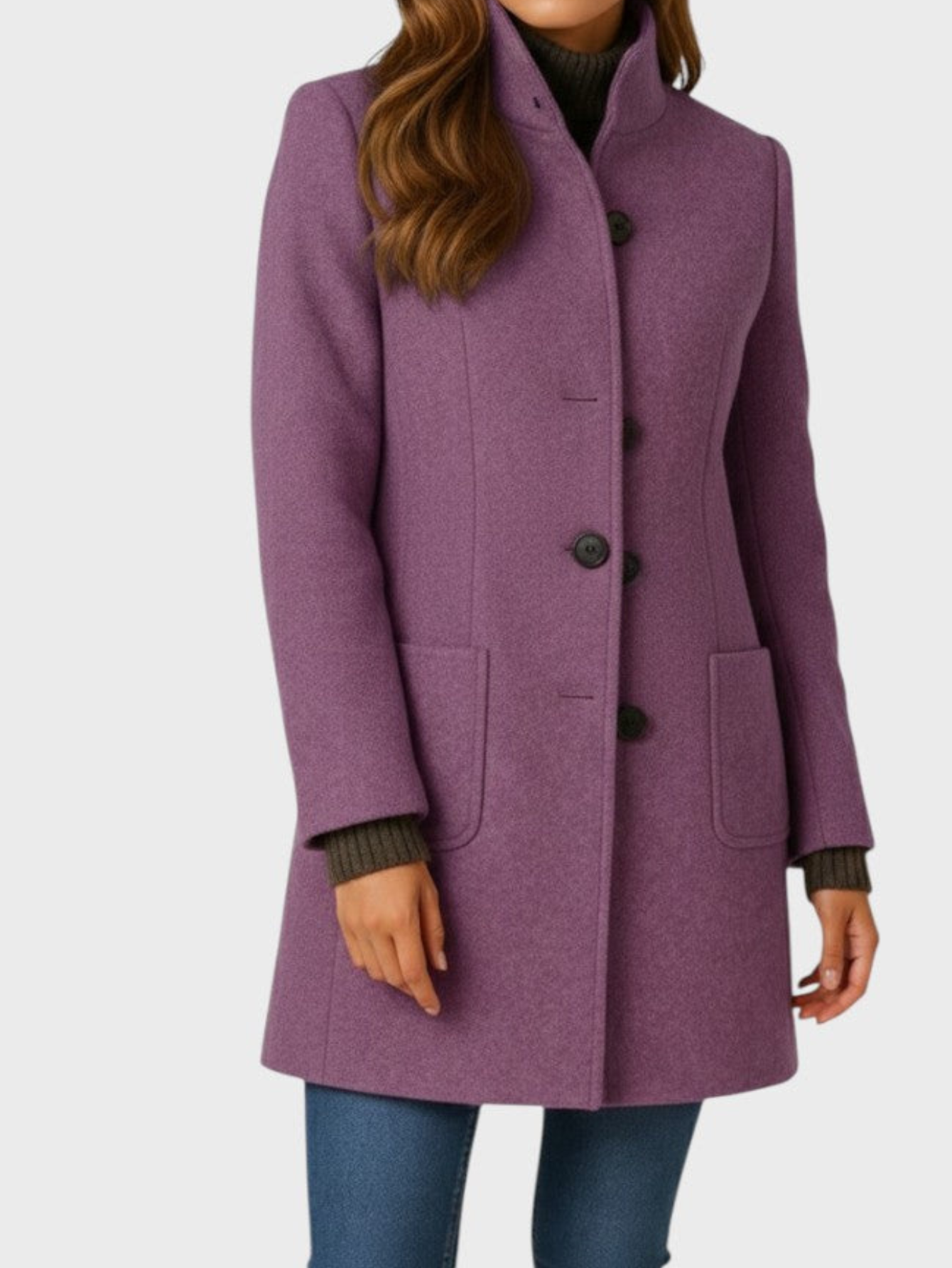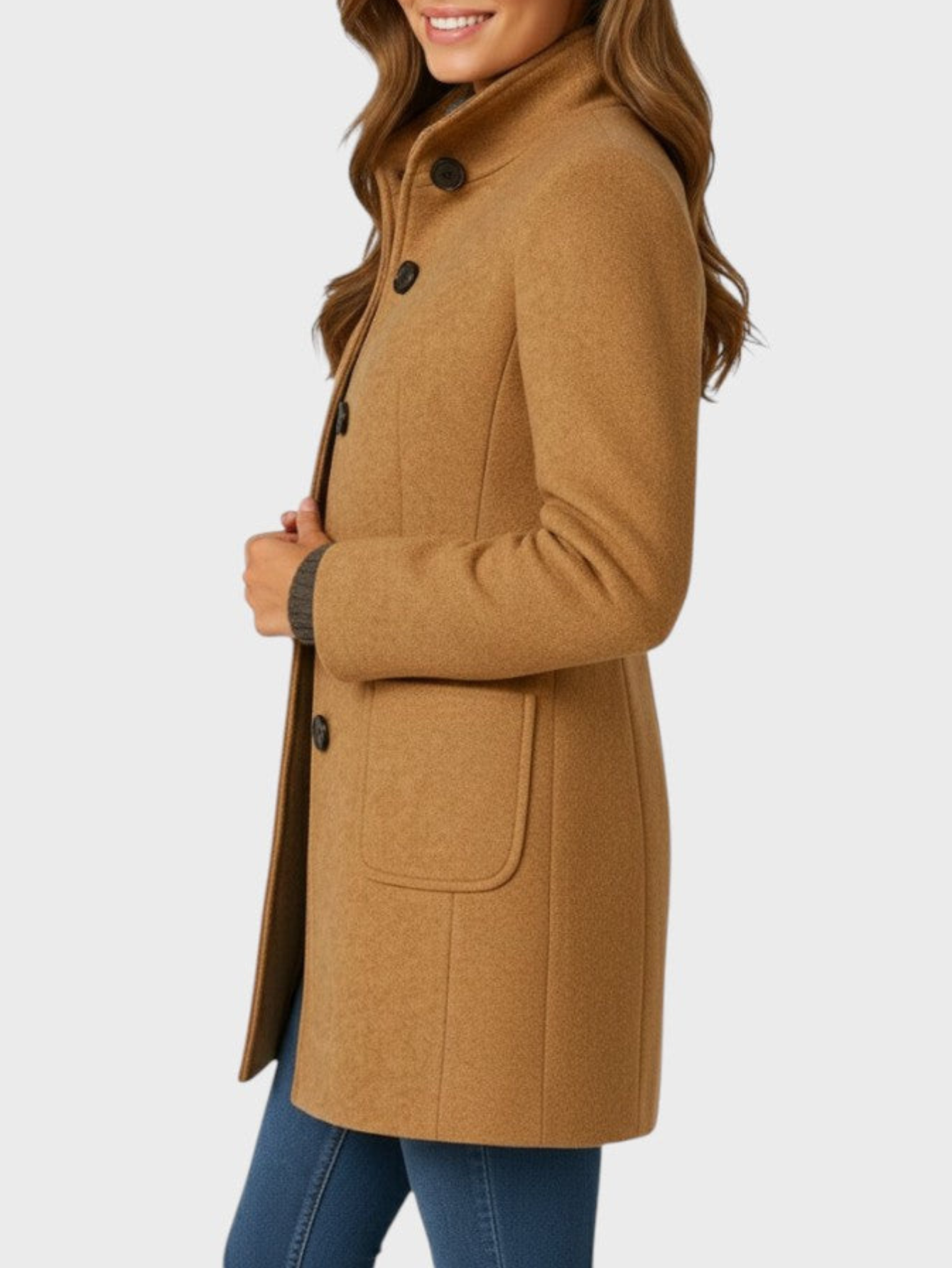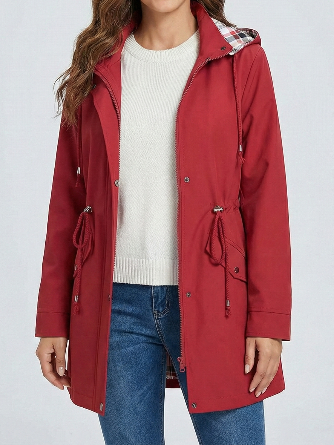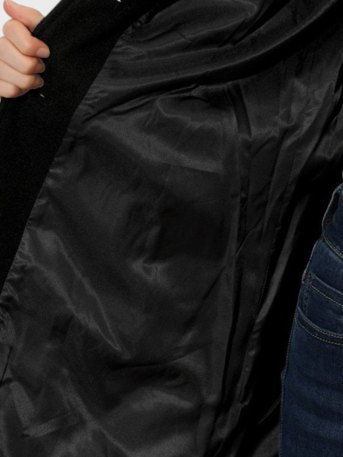 - Relaxed open-front design for effortless layering
